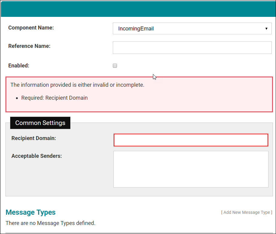 Message Types | Select Add New Message Type under the Message Types heading to add a new message type. |