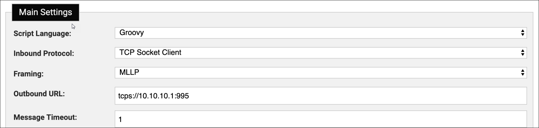 | Framing | When the inbound protocol is TCP the adapter needs to know how to break up incoming messages. One of MLLP, XMP, JSON, Line. When using MLLP the adapter will add the appropriate frame markers for return messages. For the other framing options the script must format appropriate XMP, JSON or add a newline respectively. |