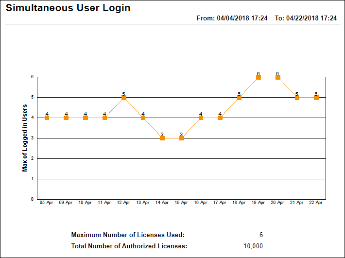 The figure below shows a graph from a sample Simultaneous User Login report.