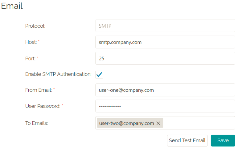 | Enable SMTP Authentication | Specifies the email is authenticated using SMTP mechanism. | Check this box to enable SMTP authentication. |