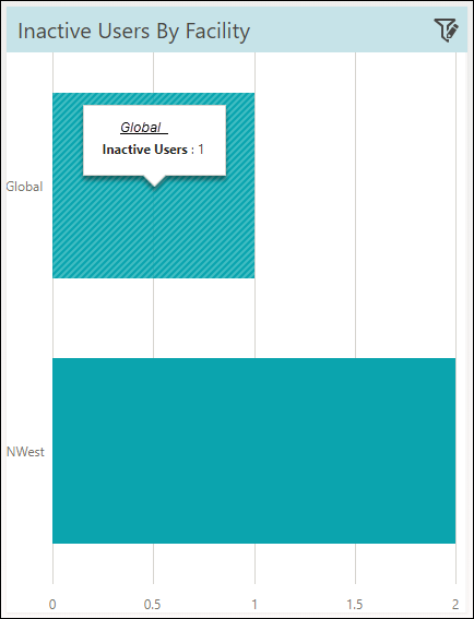 The widget displays the total number of unique inactive users in each facility. Mouse over a displayed value on the widget to view the total number of inactive users in a facility.