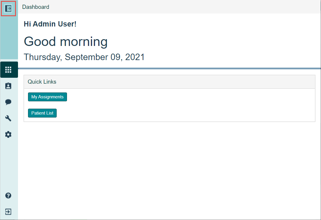 The Dashboard provides quick access to My Assignments and the Patient List. Click the Dashboard anytime to access these quick links.
