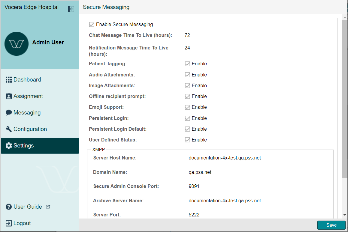 Secure Messaging provides configuration settings for all HIPAA-compliant text messages.