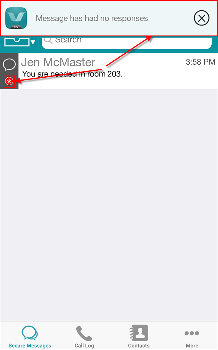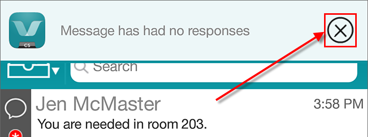 If the message is not responded to during this time period, a notification banner is displayed at the top