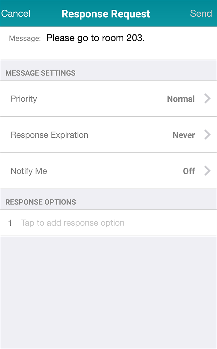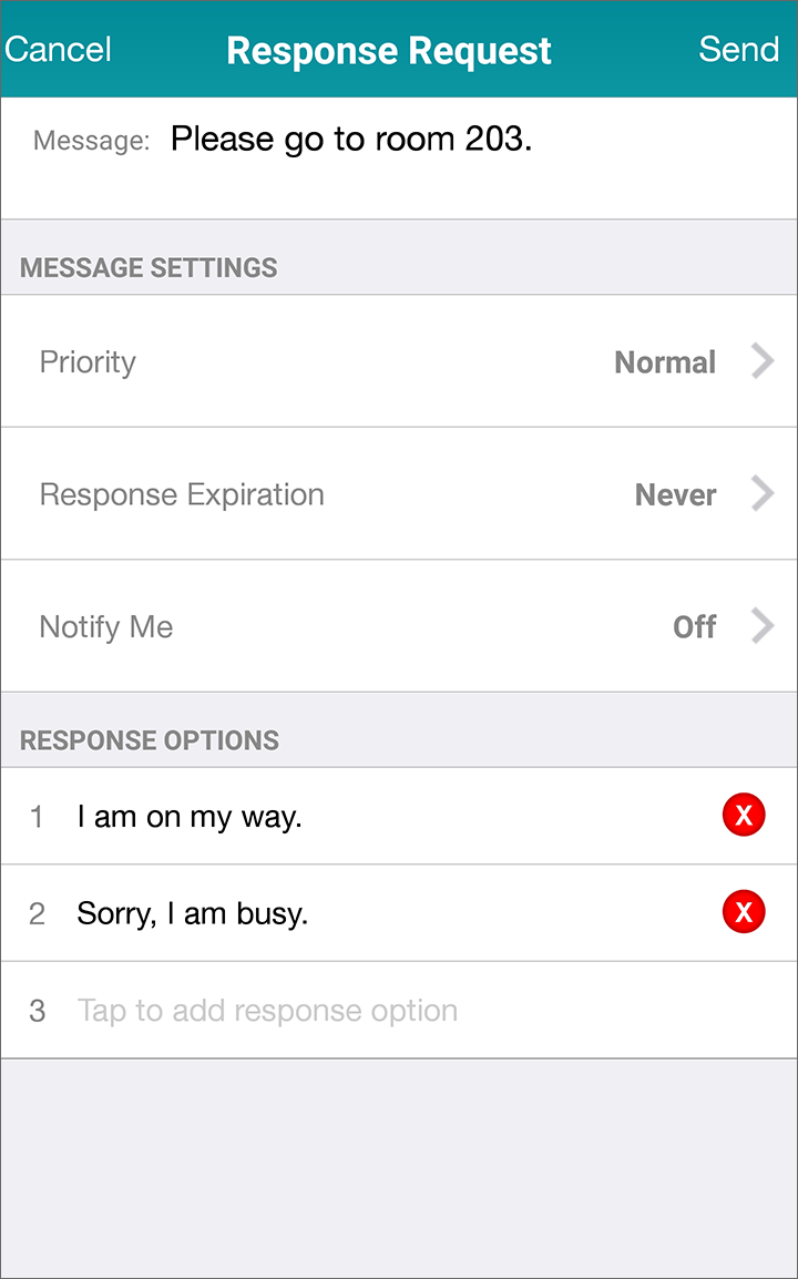 Note: If you are sending a message to a Vocera badge, response options can be a maximum of 15 characters.