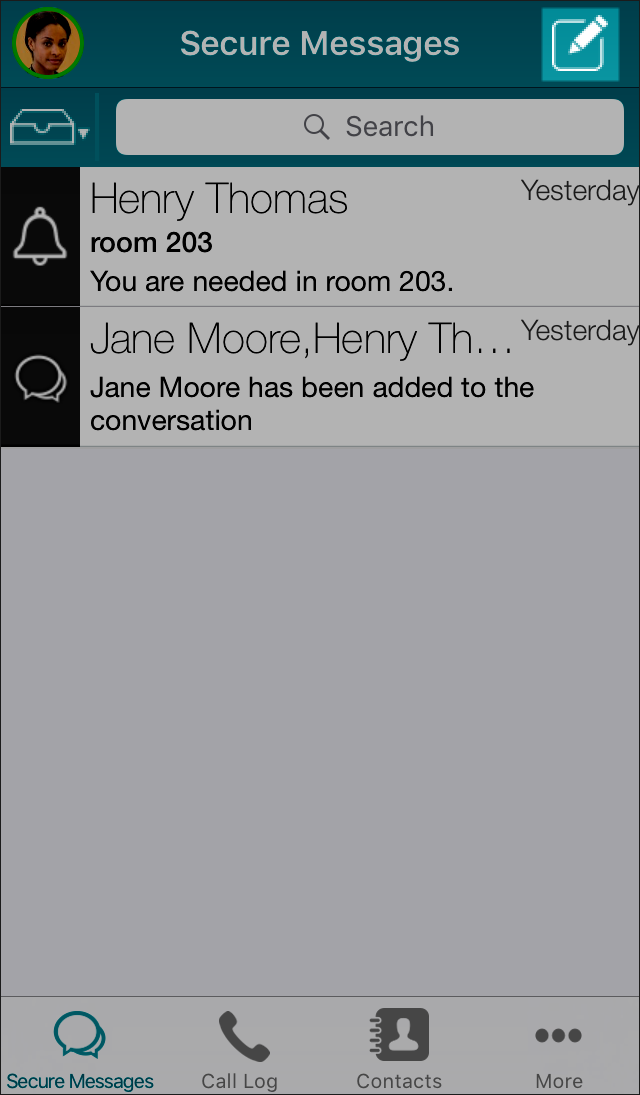 In the Secure Messages screen, tap the Compose icon at the top right of the screen.