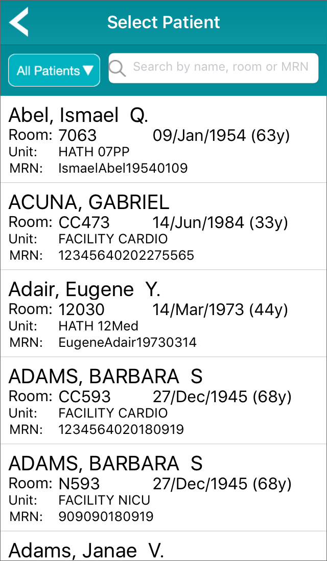 Tap My Patients to see a list of patients assigned to you, or tap