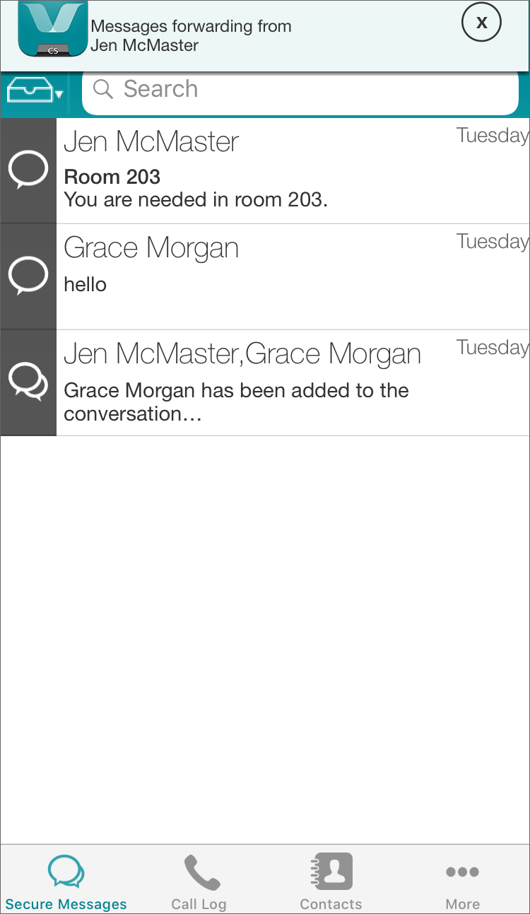 To list the contacts that are forwarding messages to you, tap Forwarding Messages to me. If a contact updates their message forwarding to forward messages to you while you are logged in, you are notified that this has happened.