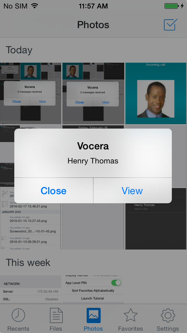 If your alert style is Alerts and your operating system is older than iOS 10, an alert appears in the center of the screen: