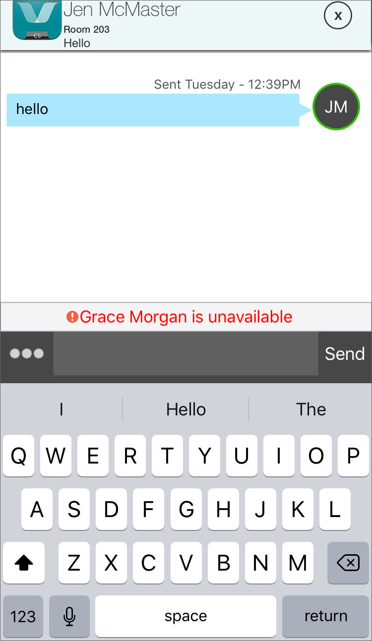 If you are in the VCS app but not in the Secure Messages screen, a notification appears at the top of the screen.