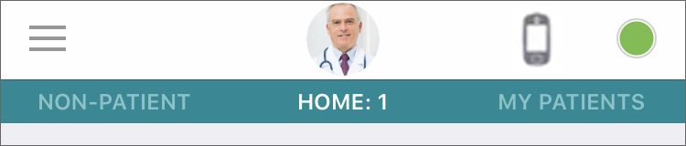 When you are using a Vocera device with the Vina app, the Vocera Genie is not accessible from Vina, and a badge icon appears at the top of the screen instead of the Genie icon: