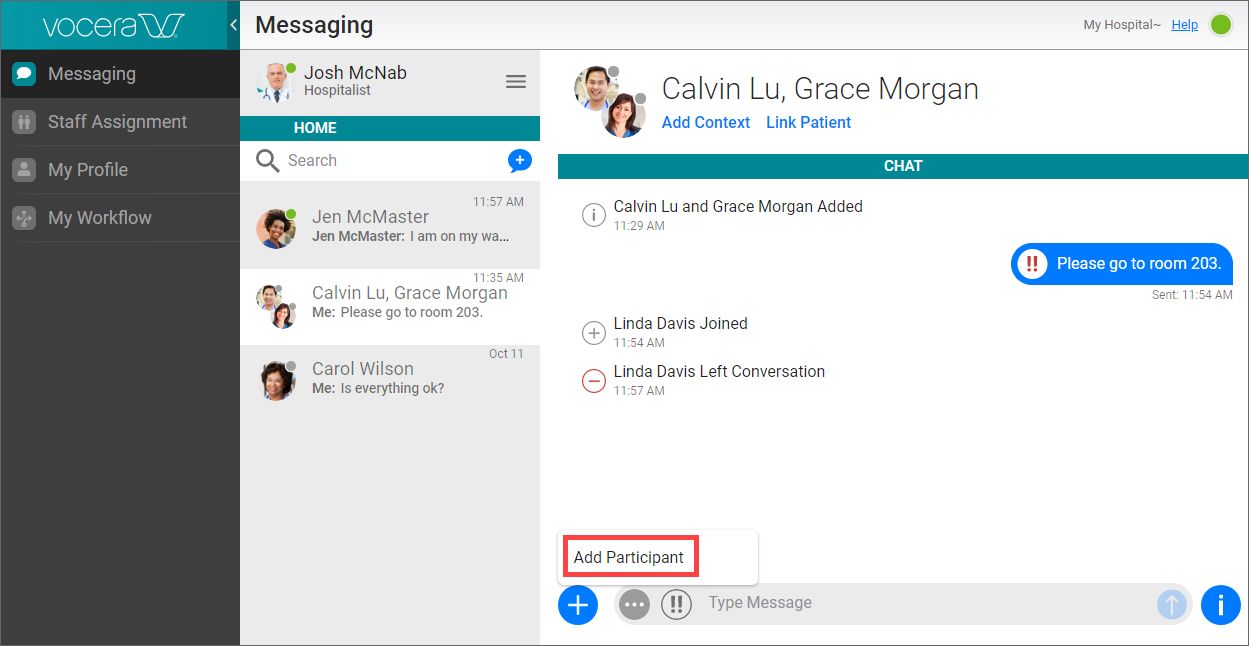 If you are in an existing group chat, you can add other participants to it. If you are in a conversation with one other person, and you want to add other participants, you can create a new group chat consisting of you, the other person in the conversation, and the new participants.