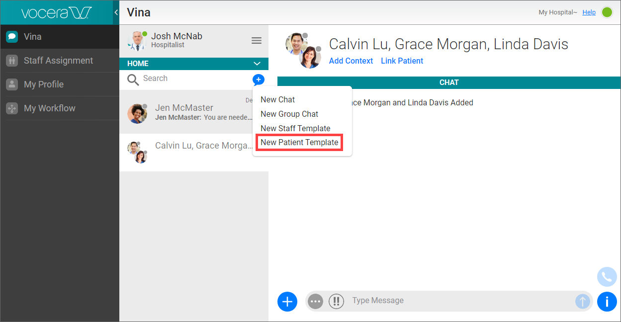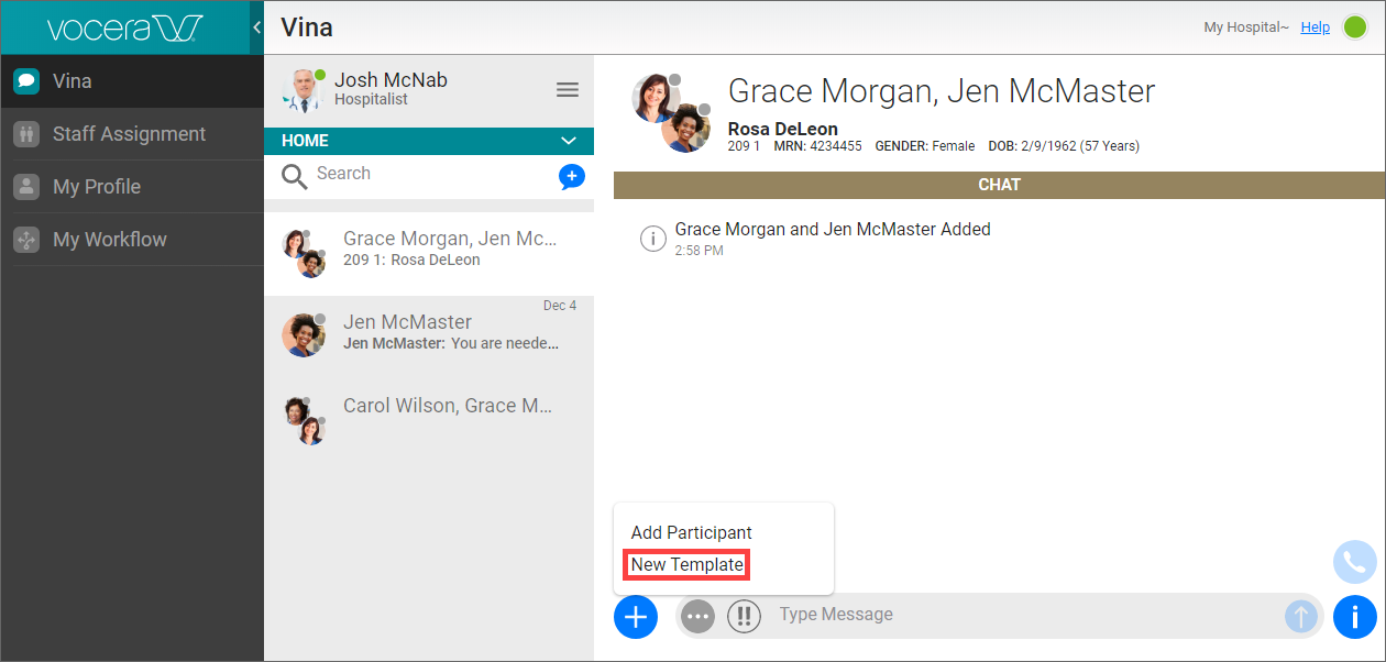 If you are using a template with an existing conversation, click the Add link at the bottom left and select New Template.