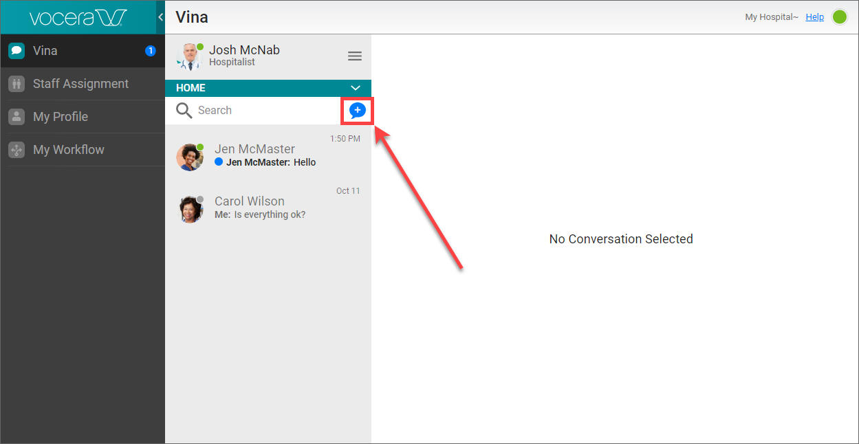In the panel that displays the list of conversations, click the New icon.