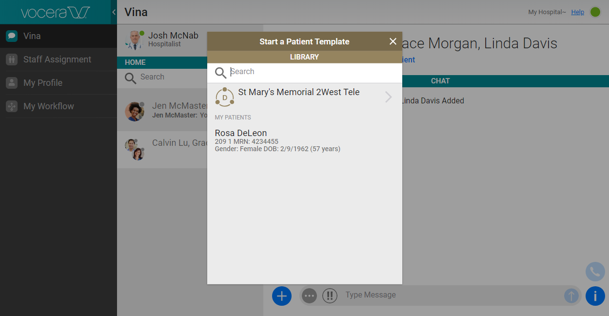 The Start A Patient Template panel appears.