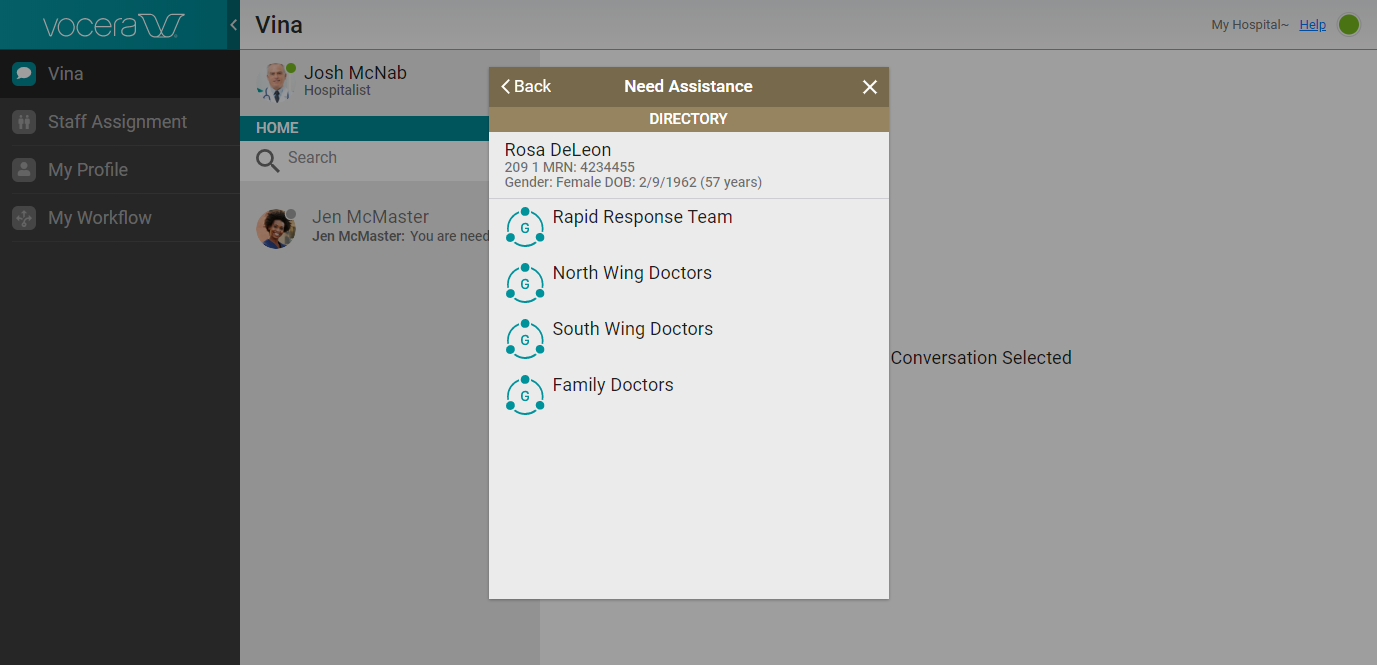 Select a patient or location from the list, or select a group and then select a patient or location.