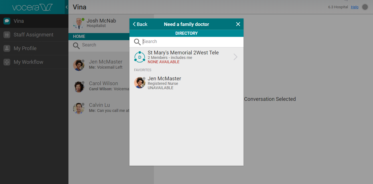 If the template requires you to select the recipient of the user-generated alert generated from the template, a screen appears that displays your favorites and your department if it has been configured to appear.