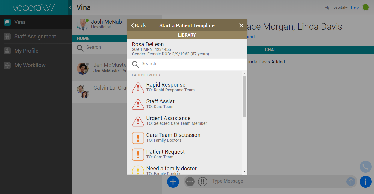 In this list, Patient Events templates and Location Events templates appear if your administrator has made them available to you.