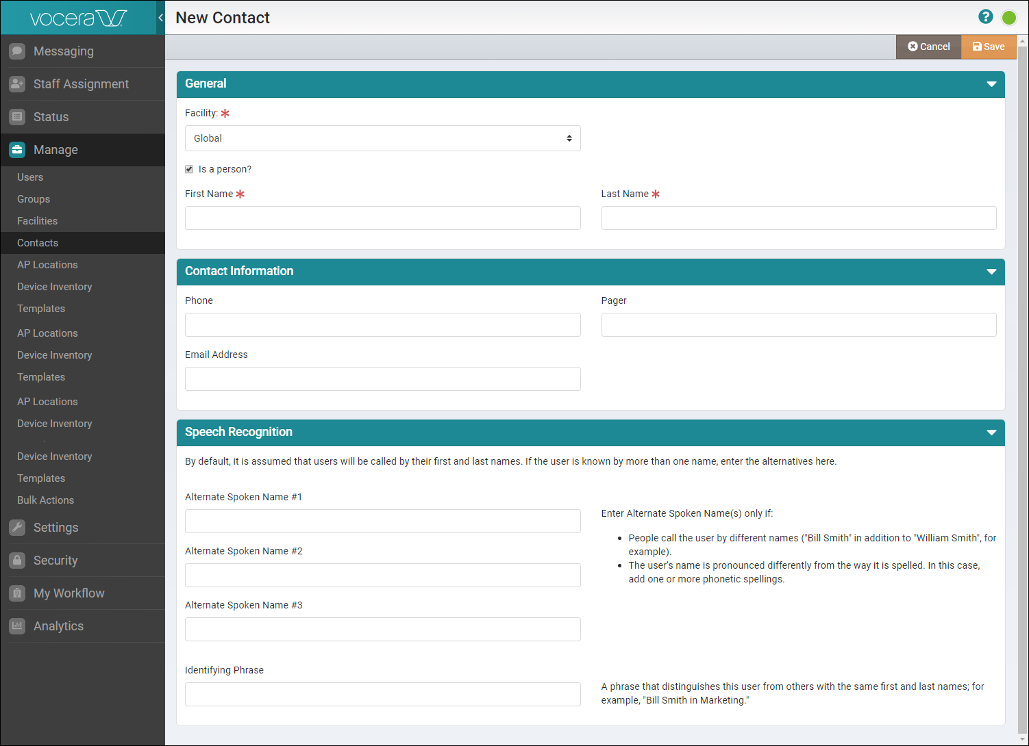 | Manage in Vocera Platform / Contacts in Vocera Platform | |