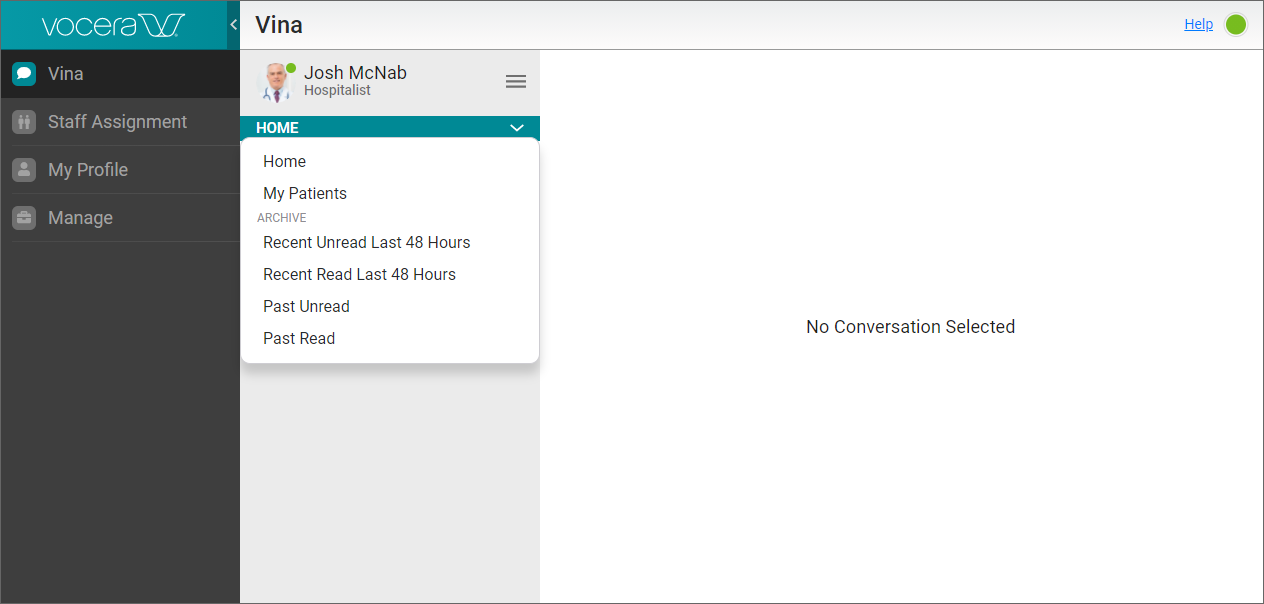 Select Recent Unread Last 48 Hours to view a list of unaccepted alarms and unread conversations from the last 48 hours.