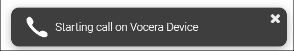 - If a Console phone is not configured, "Starting call on Vocera Device " pop-up message displays as shows in the following screenshot.