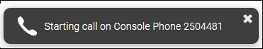 - If a Console phone is enabled and configured as described in Enabling a Console Phone, "Starting call on Console Phone <phone number>" pop-up message displays as shown in the following screenshot.