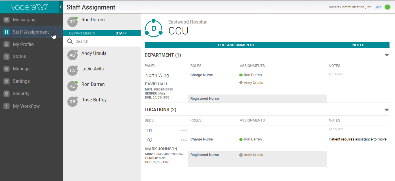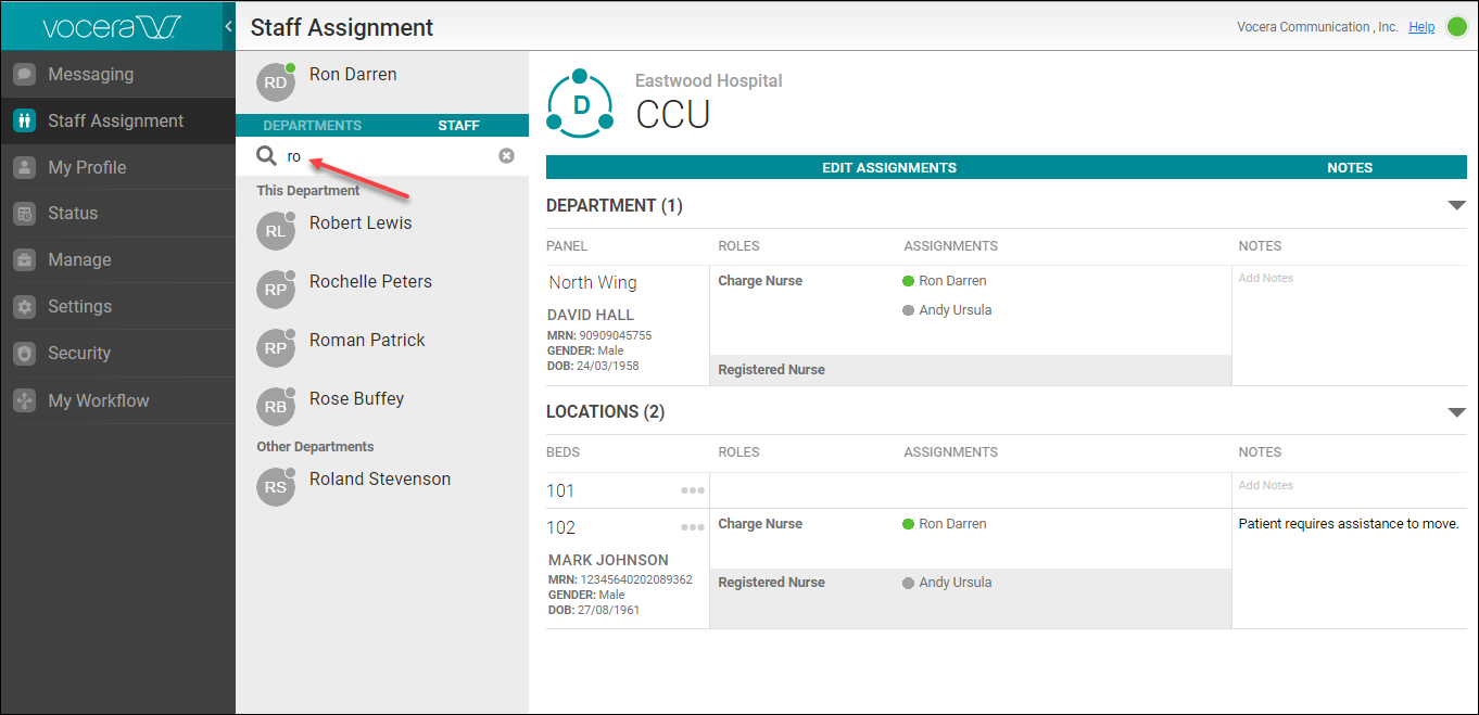 View and search the staff members within a department or all departments in a facility.