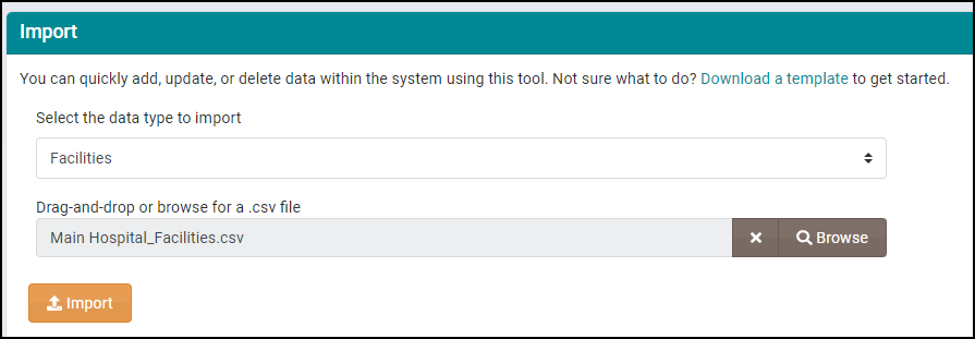 Use pre-defined Templates to quickly create Comma-Separated Value (CSV) files to upload bulk data to the system in the Vocera Engage Web Console.