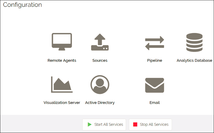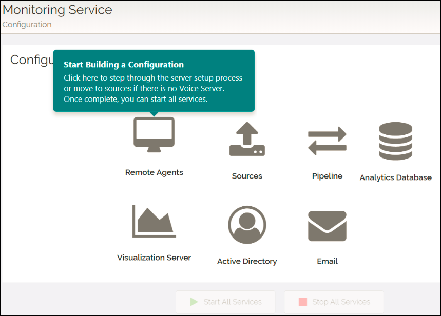 The Vocera Analytics Service Monitor provides configuration and monitoring information for the Vocera administrator to set up and configure the services.