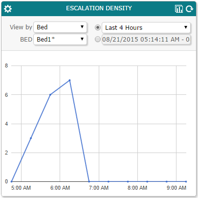 the rate of alarm escalation for any bed or nurse, or display a complete view of the escalation density.