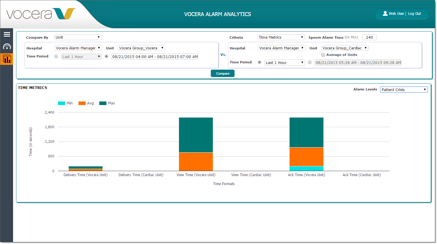 | Using Vocera Alarm Analytics / Viewing Comparisons | |