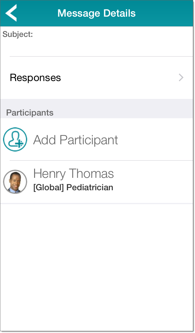 message subject and the list of participants. From this screen, you can add a message participant and change the
