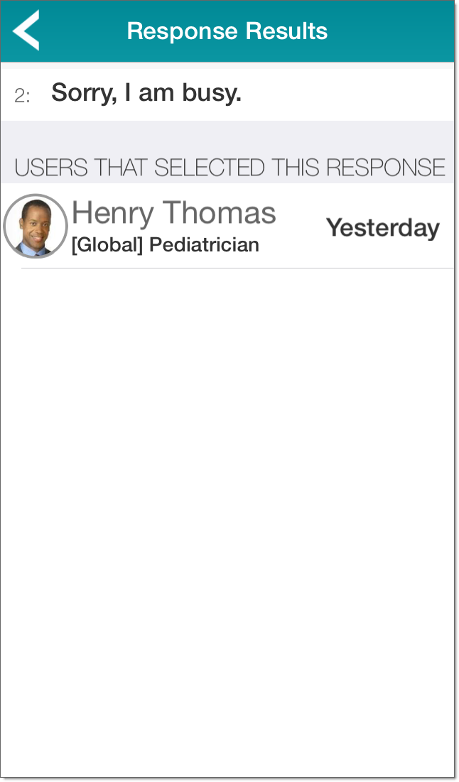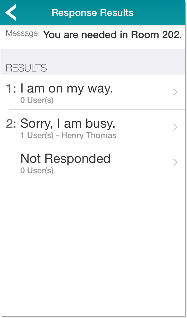 Tap the message link to view the Response Results screen, which lists all of the responses and the number