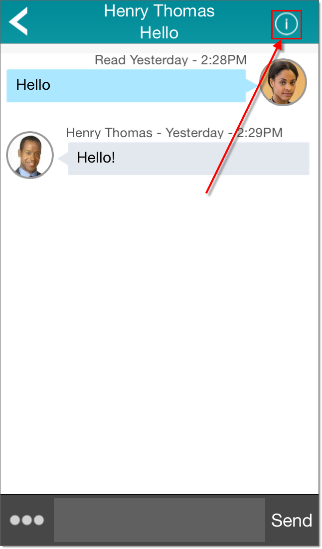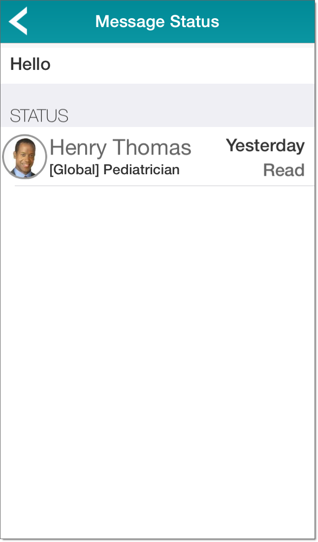 This screen displays the message subject and the list of participants. Tap on the name of a participant