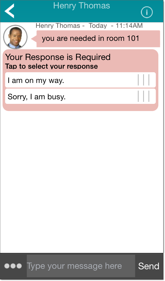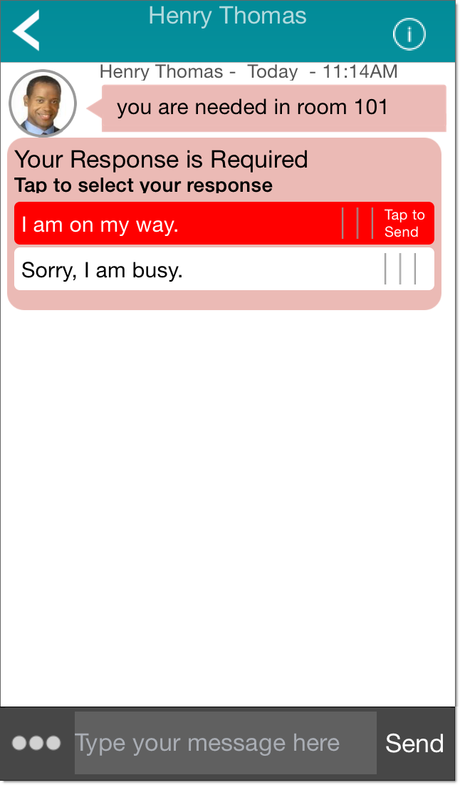 When you are sending a message using the text box, you can set a message priority, attach a photo, or require a response. For details on how to use