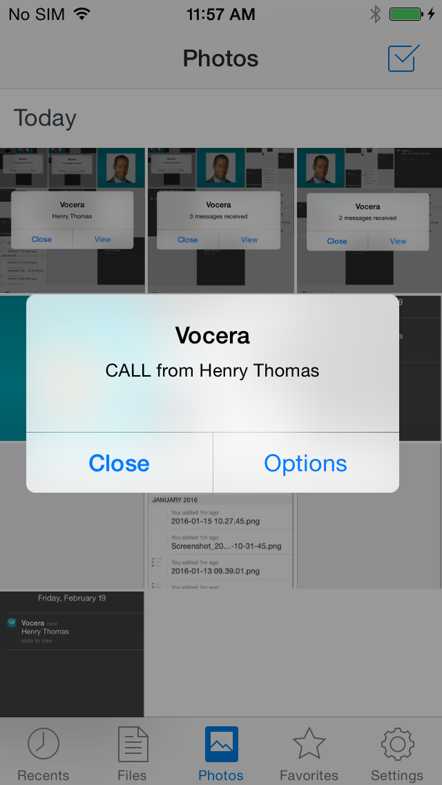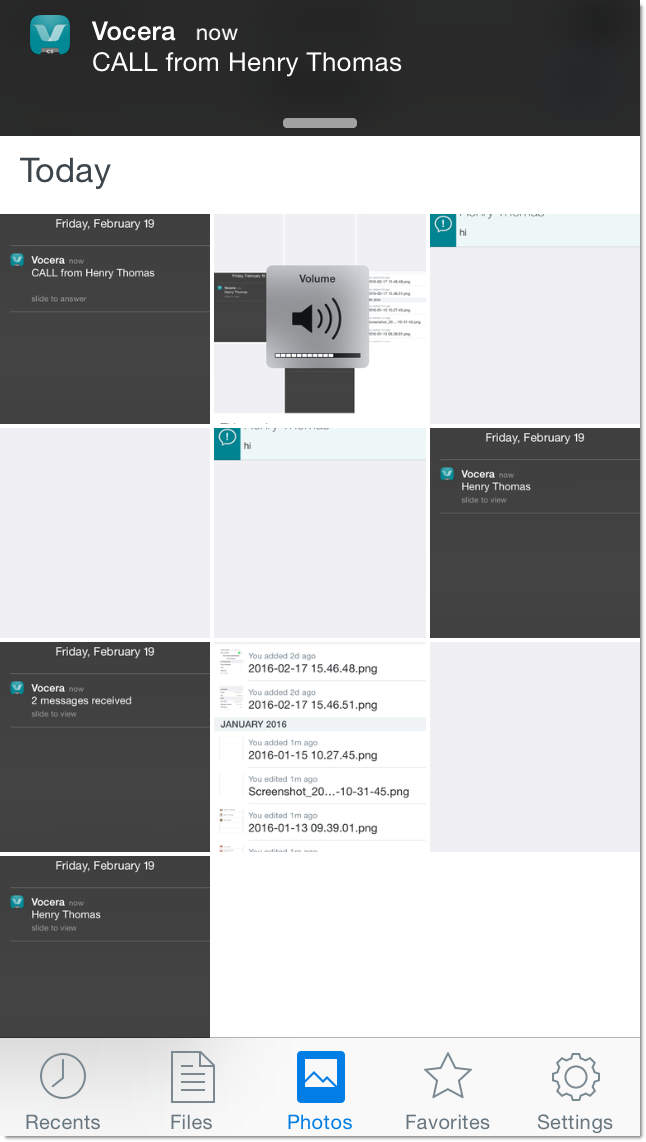 If you are in another app and the VCS app is running in the background, the notification that appears depends on whether you have enabled notifications, and the alert style you have specified.
