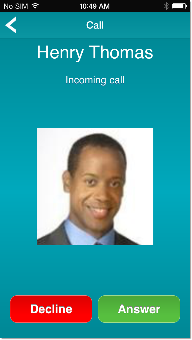 If you are in the VCS app, a screen appears that displays the name and photo of the incoming caller: