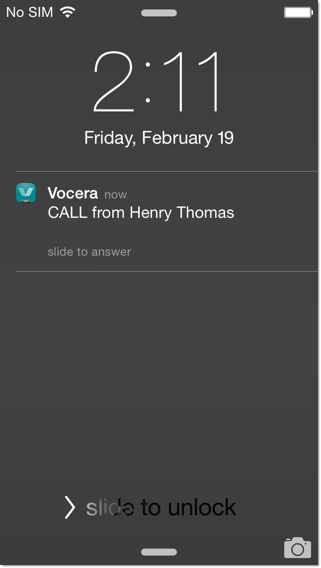 Swipe the notification to go to the VCS app and answer the call.