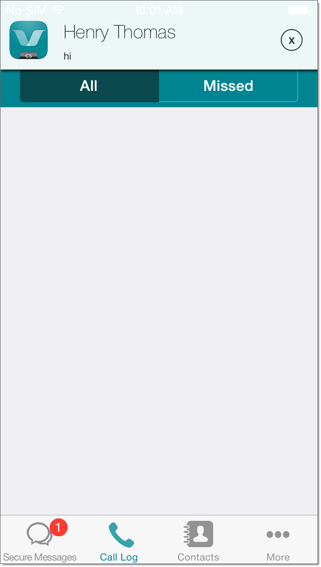 If you are in the VCS app but not in the Secure Messages screen, a notification appears at the top of the screen.