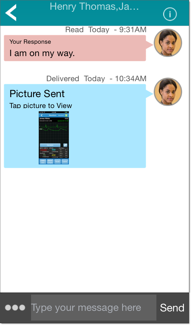 If you have received a message containing a picture, a thumbnail link to this picture is displayed in the message.