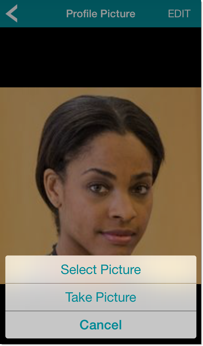 Tap Edit Profile Picture. This displays a larger-sized version of your profile picture, if it exists.