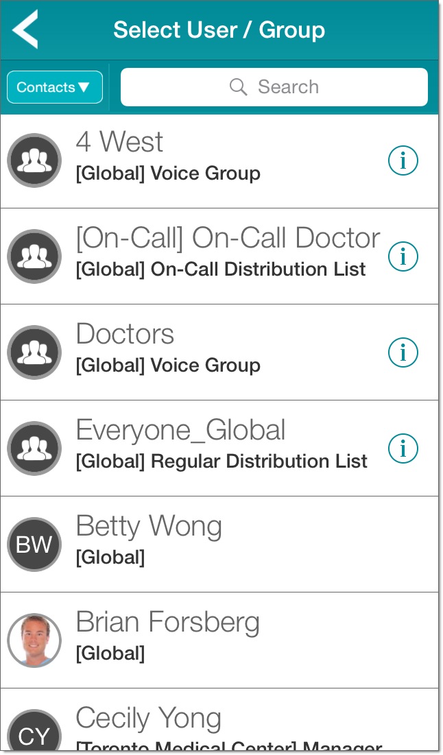 You can also type the start of a contact name. A list of matching contents then appears. From this list, you can