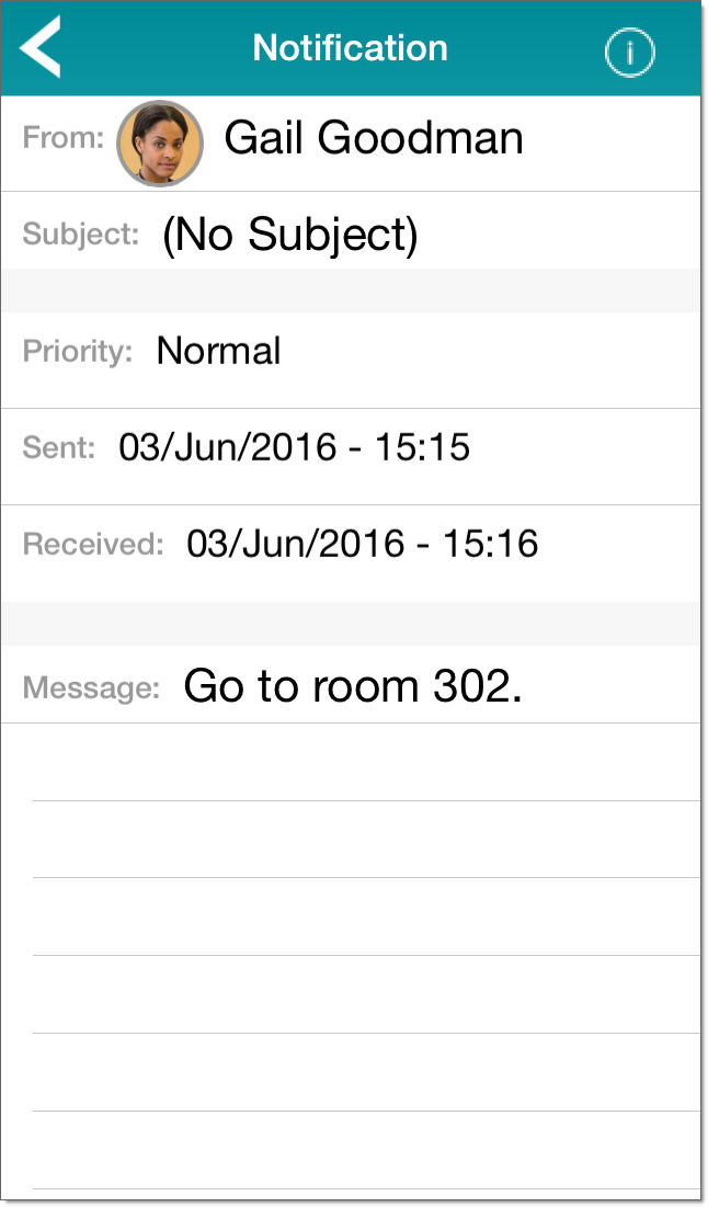 If you have received the notification, the Notification screen displays: