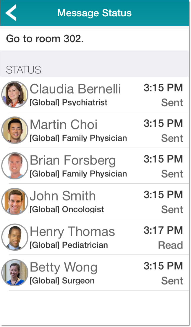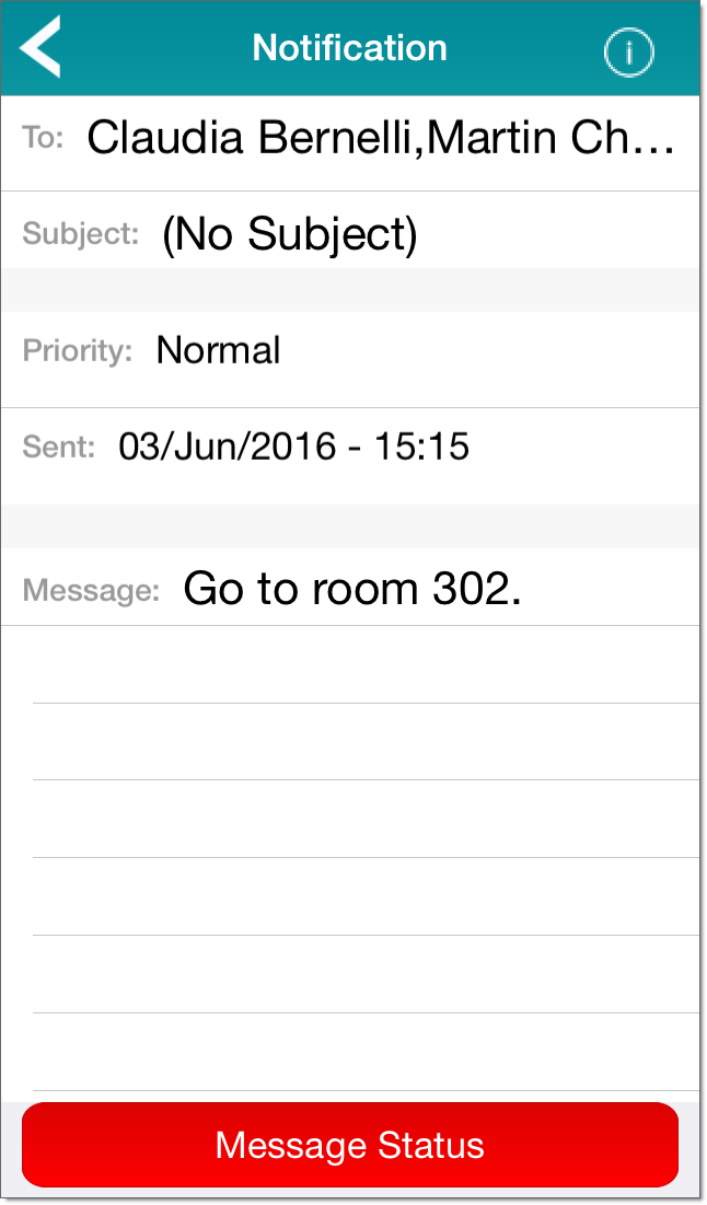 Tap Message Status to display the Message Status screen. This indicates whether the message recipients have read the message: