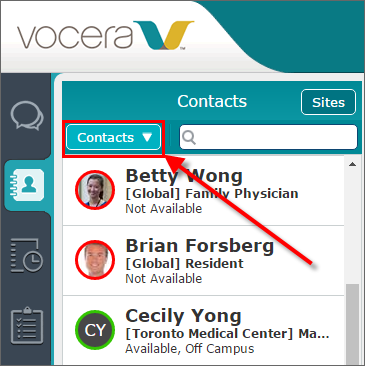 Use the Contacts view to initiate a communication with a contact.