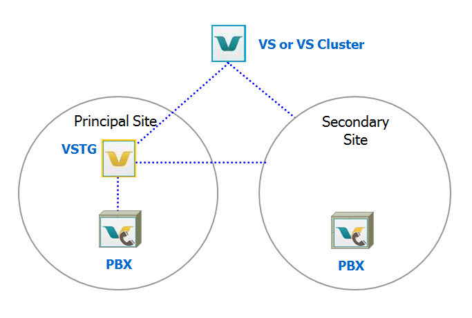 Figure 2. Multiple Site Scenario Using 1 PBX and a VSTG Array