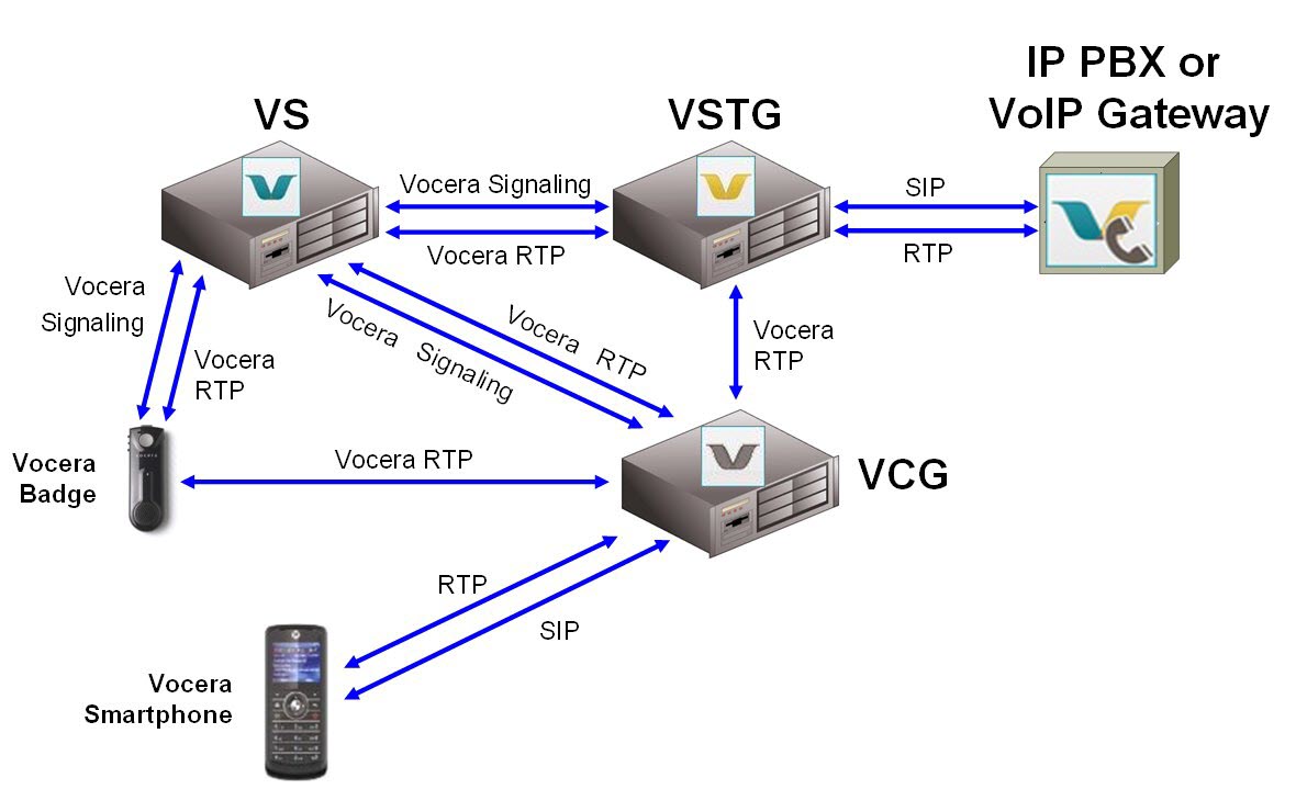 Vocera SIP Telephony Gateway is a SIP telephony gateway between the Vocera Server and an IP PBX or a VoIP gateway.