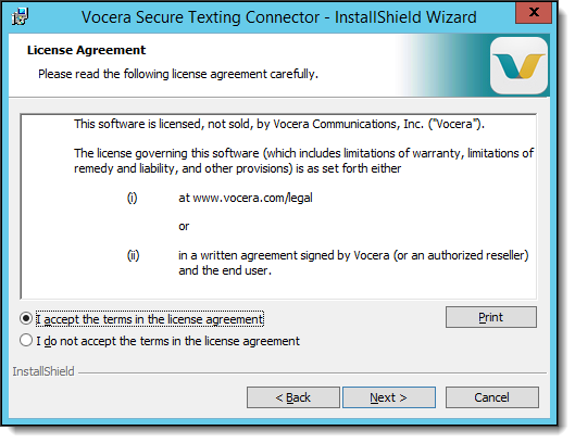 Use the steps in this topic to install the Vocera Secure Texting Sync Connector